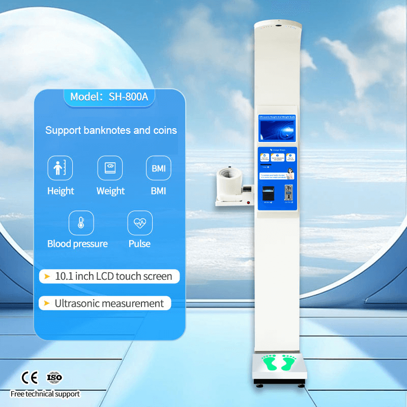 SH-800A投幣身高體重血壓心率一體機可識別100多個(gè)國家的幣種,可自由調整投幣個(gè)數,同時(shí)支持投紙幣,支持英語(yǔ)、西語(yǔ)等多語(yǔ)言播報及打印小票。設備外觀(guān)大氣、造型美觀(guān)、耐用不易損壞,是一款功能多、實(shí)用性強的設備。